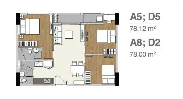 3 phòng ngủ – 2 nhà vệ sinh – 78m2 – 78.12m2