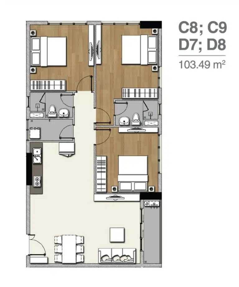 3 phòng ngủ – 2 nhà vệ sinh – 103.45m2