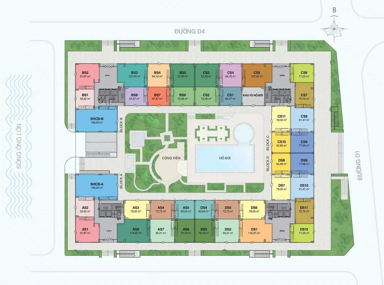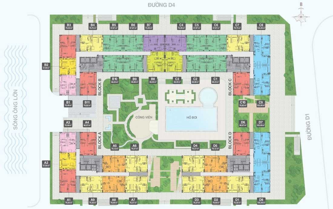 Mặt bằng Tầng 4 của Florita là tầng căn hộ điển hình, mang đến sự khác biệt rõ rệt so với các tầng Officetel, tập trung hoàn toàn vào chất lượng sống cư dân. Các Block A, B, C, D được bố trí các loại hình căn hộ đa dạng, với thiết kế tối ưu công năng, đón ánh sáng tự nhiên. Đặc biệt, tầng này sở hữu tầm nhìn trực diện và bao quát xuống khu vực hồ bơi và công viên xanh mát, tạo nên một không gian nghỉ dưỡng ngay tại thềm nhà. Vị trí lý tưởng này, cùng với việc tiếp giáp Sông Ông Lớn và các tuyến đường lớn, biến Tầng 4 Florita trở thành sự lựa chọn an cư và đầu tư bền vững, khẳng định phong cách sống thượng lưu và tiện nghi.