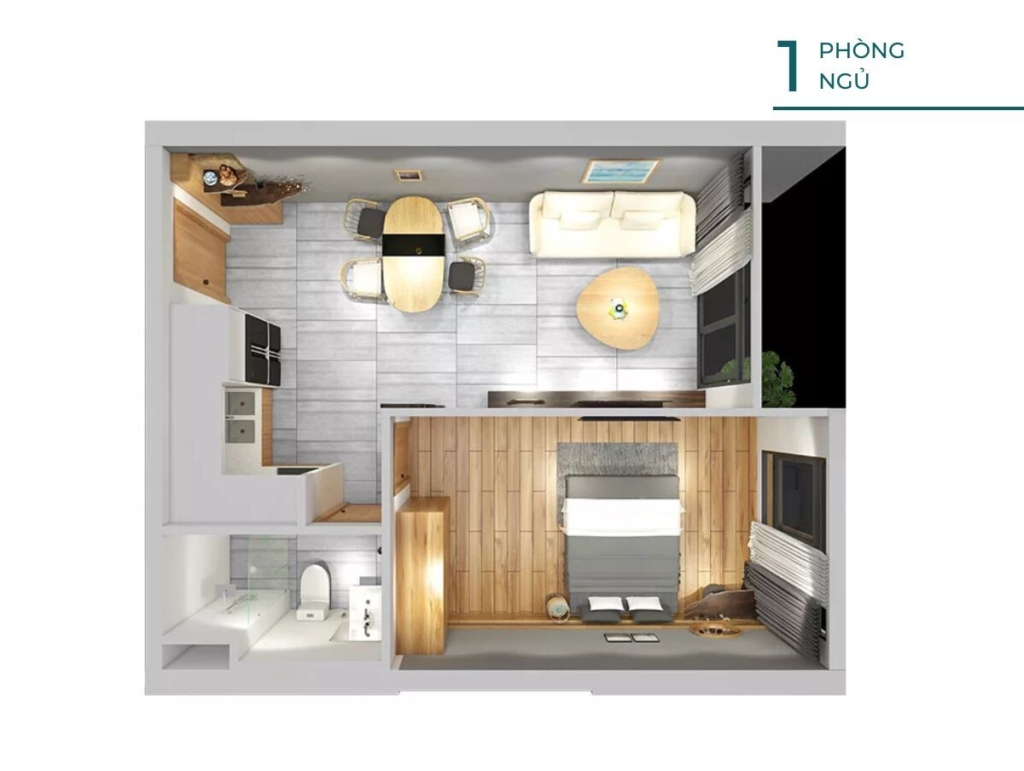 Căn 1 phòng ngủ – 1 nhà vệ sinh, 53 – 55m2