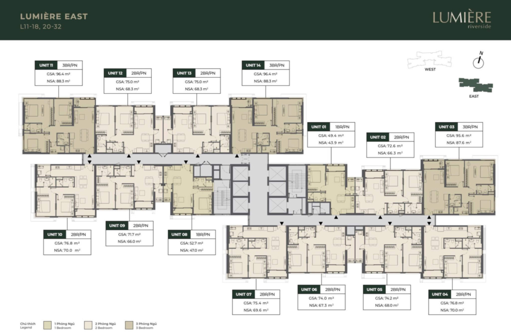 Tháp East – Tầng 11-18 & Tầng 20-32
