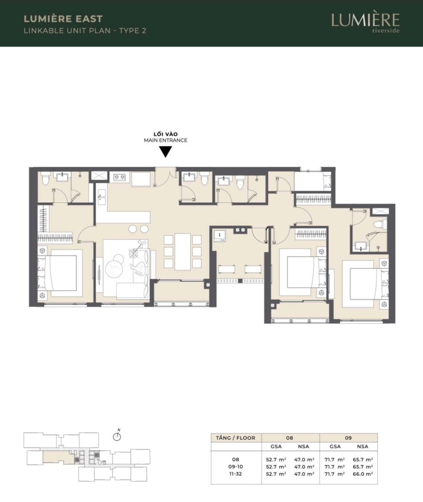 Mặt bằng căn hộ Lumiere Riverside – Tháp East