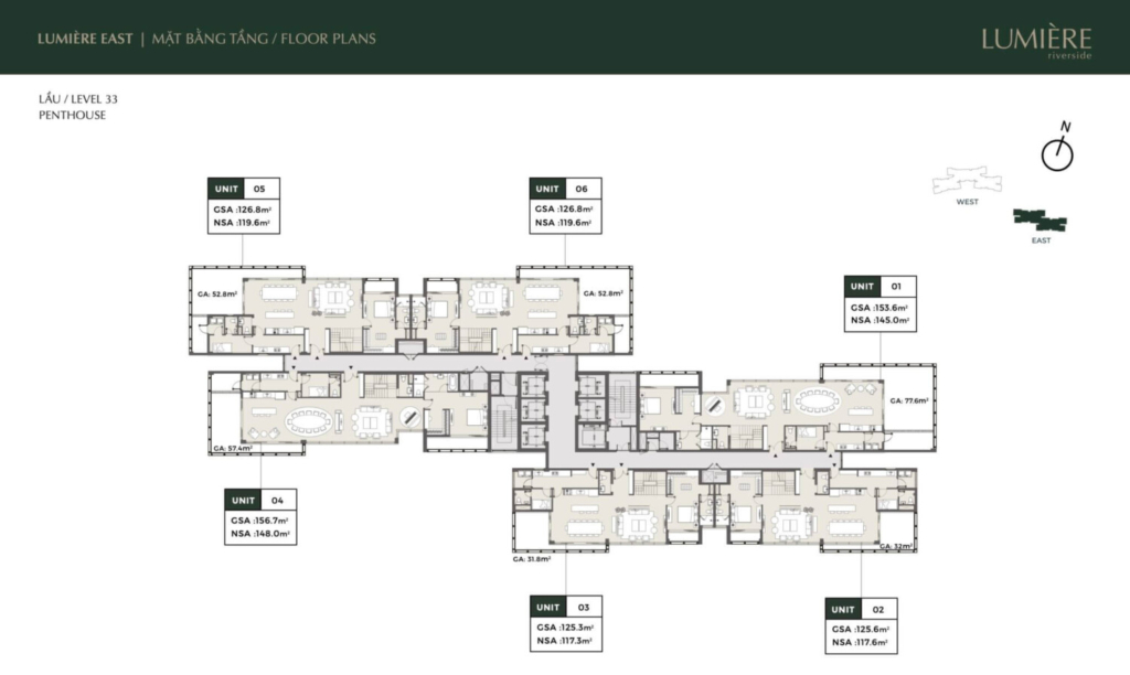 Tháp East – Tầng 34 – Penthouse, Mặt bằng Lumiere Riverside