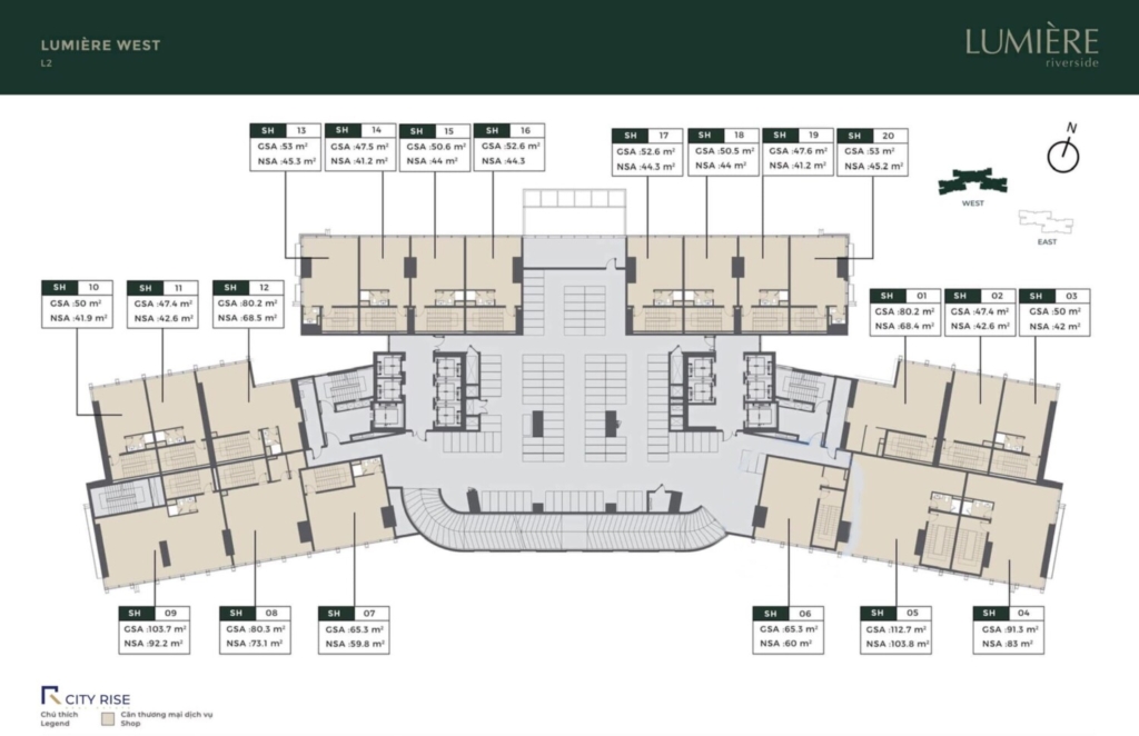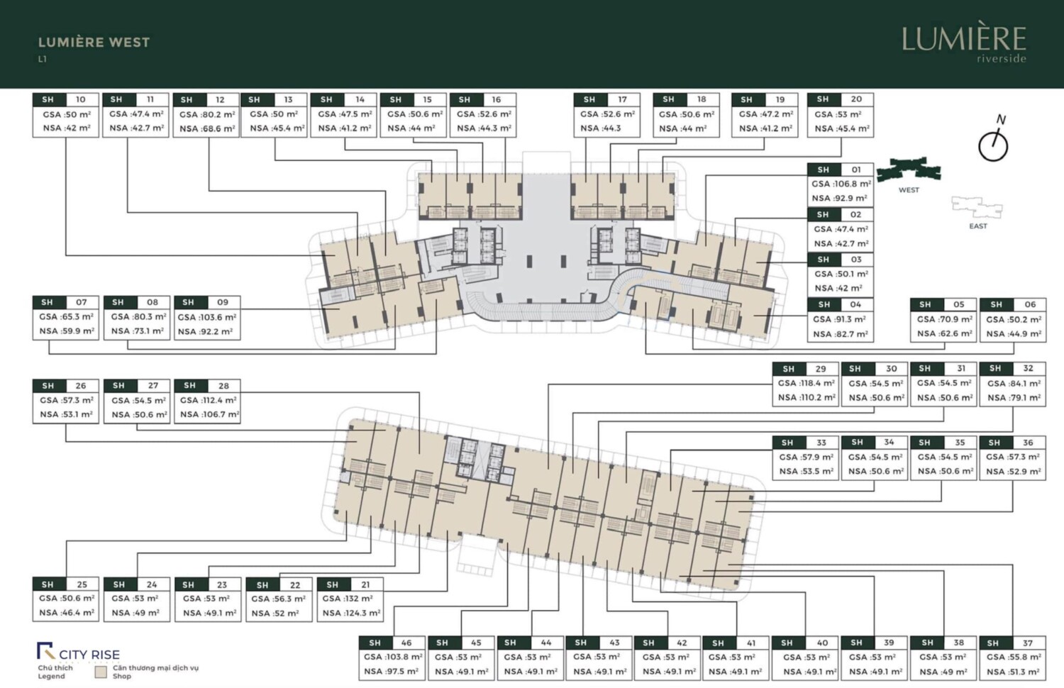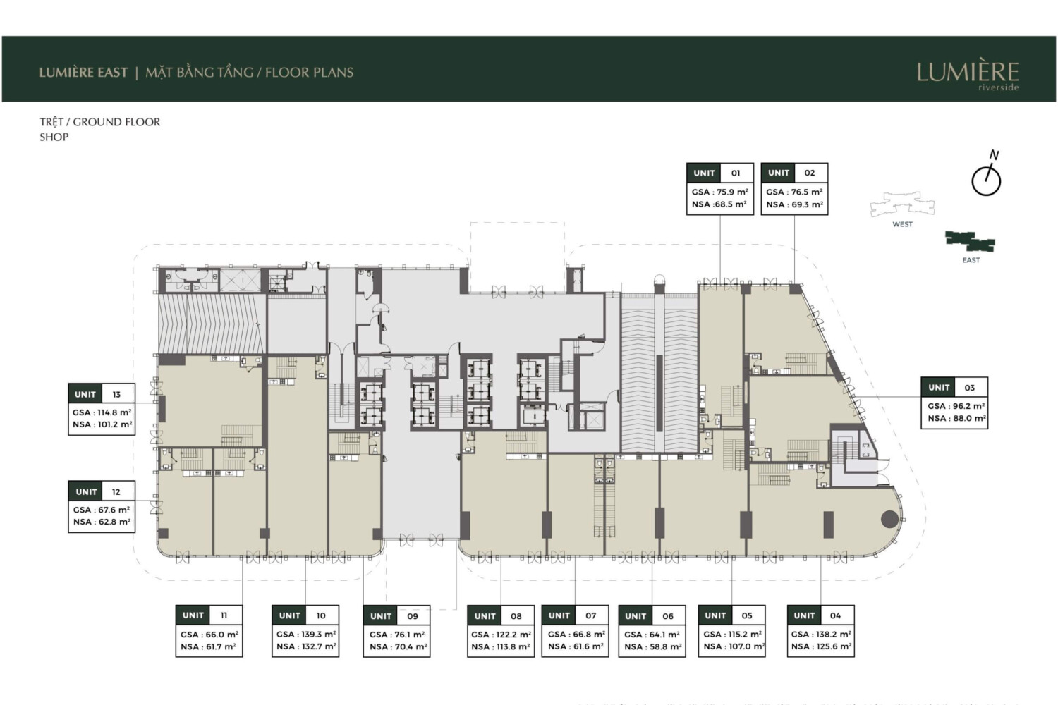 Tháp East – Tầng 1– Shophouse, Mặt bằng Lumiere Riverside