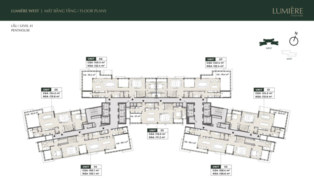 Tháp West – Tầng 42 – Penthouse, Mặt bằng Lumiere Riverside