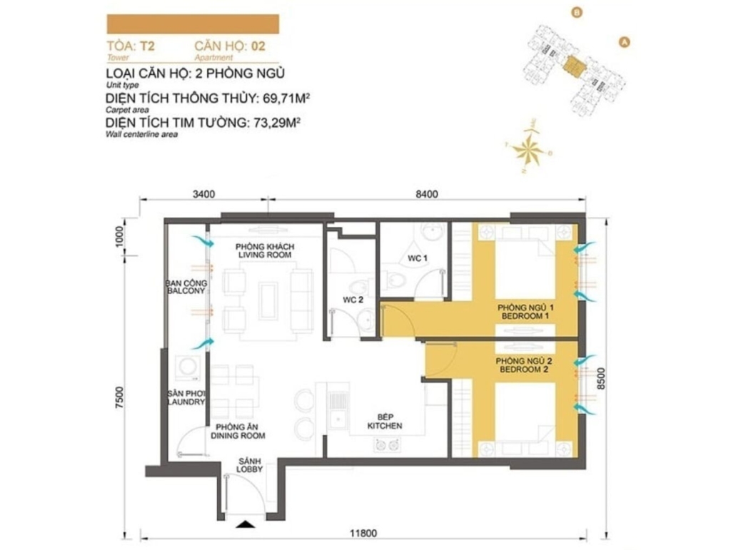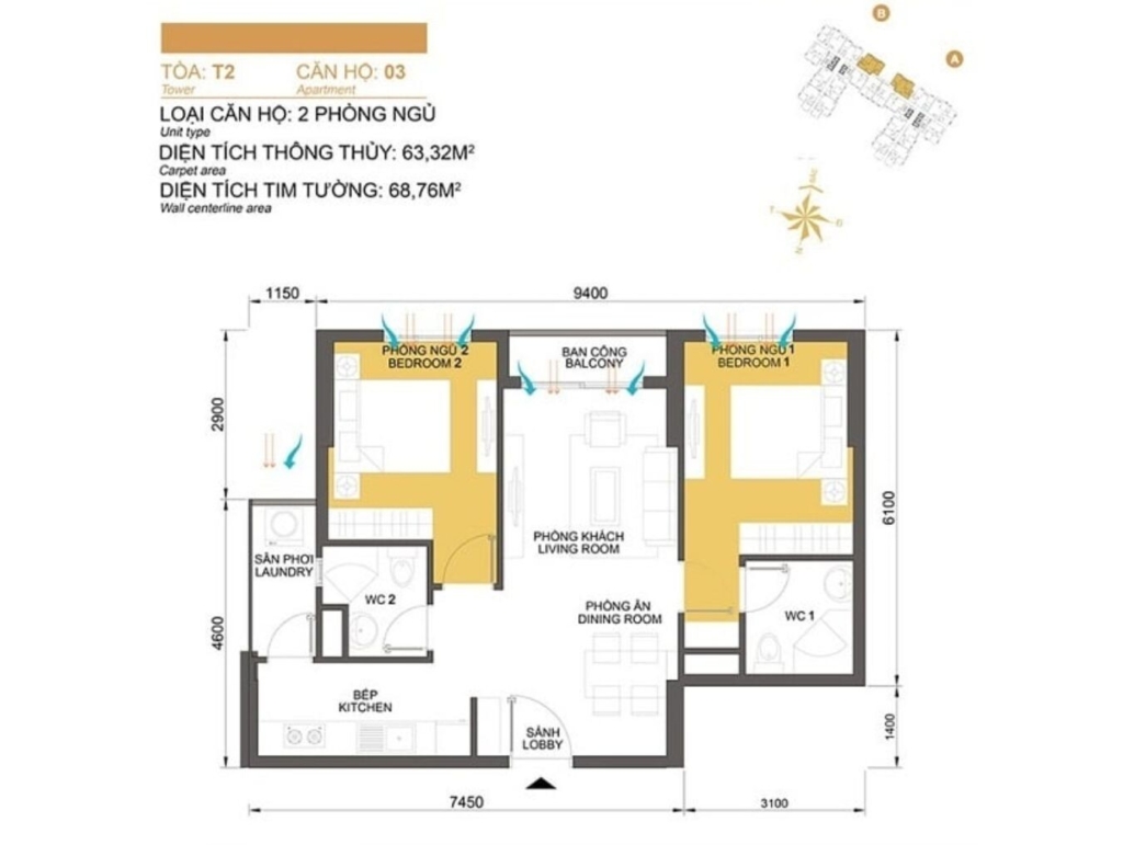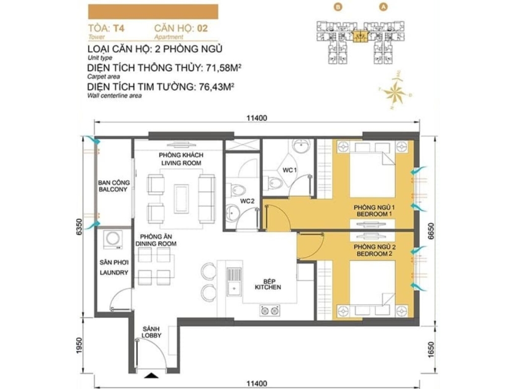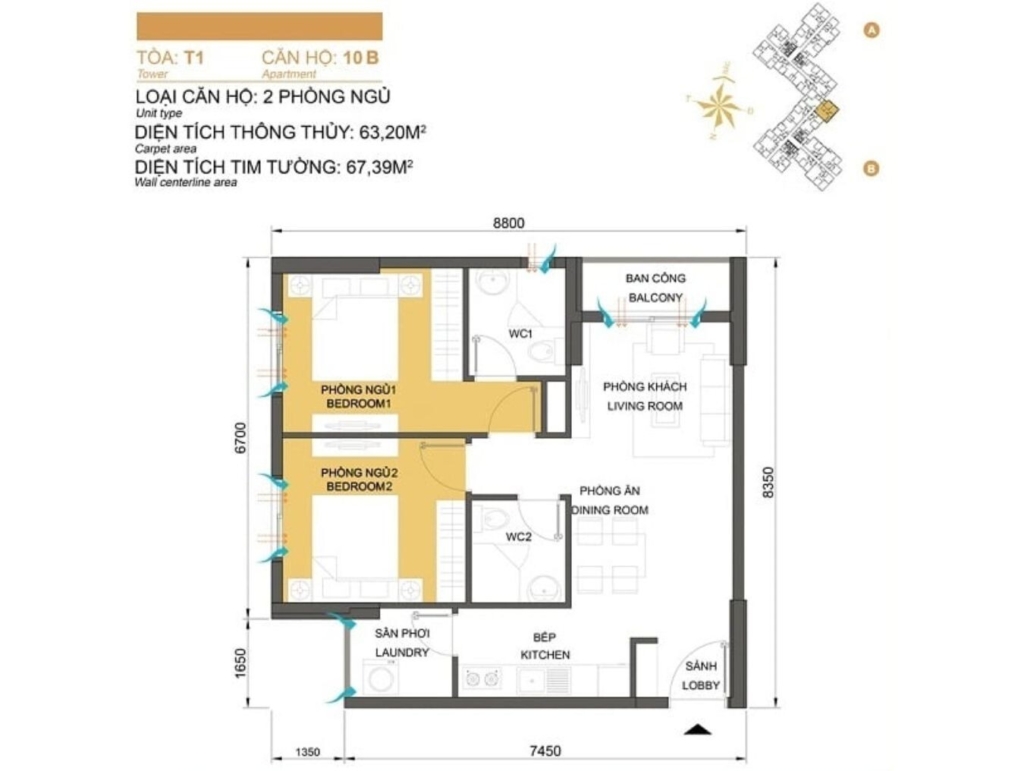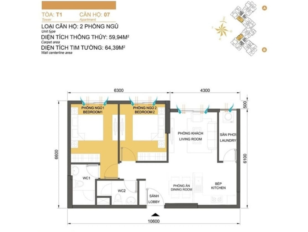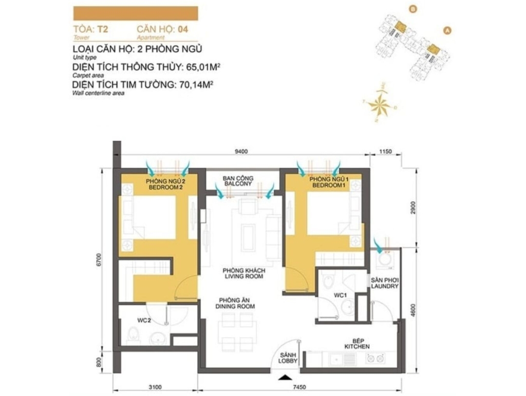 Mặt bằng Tòa T2