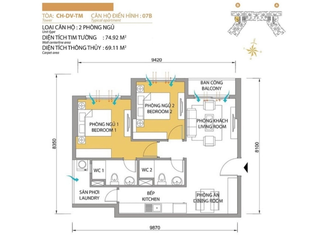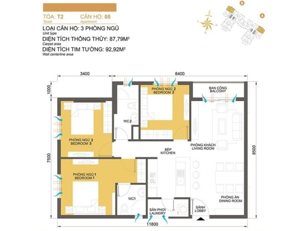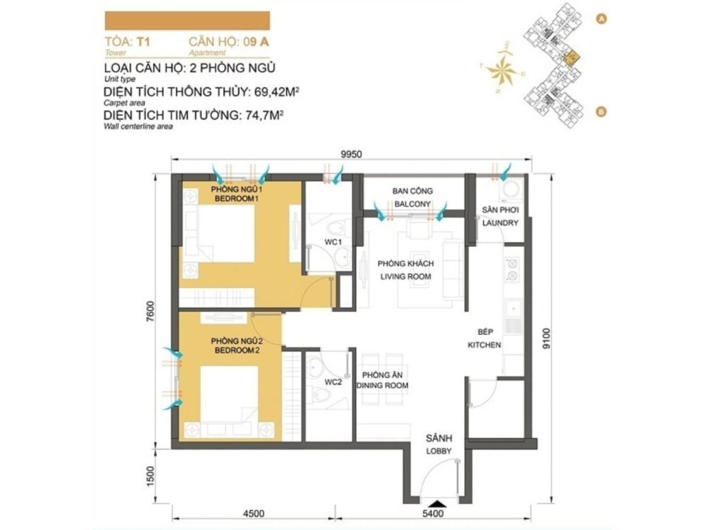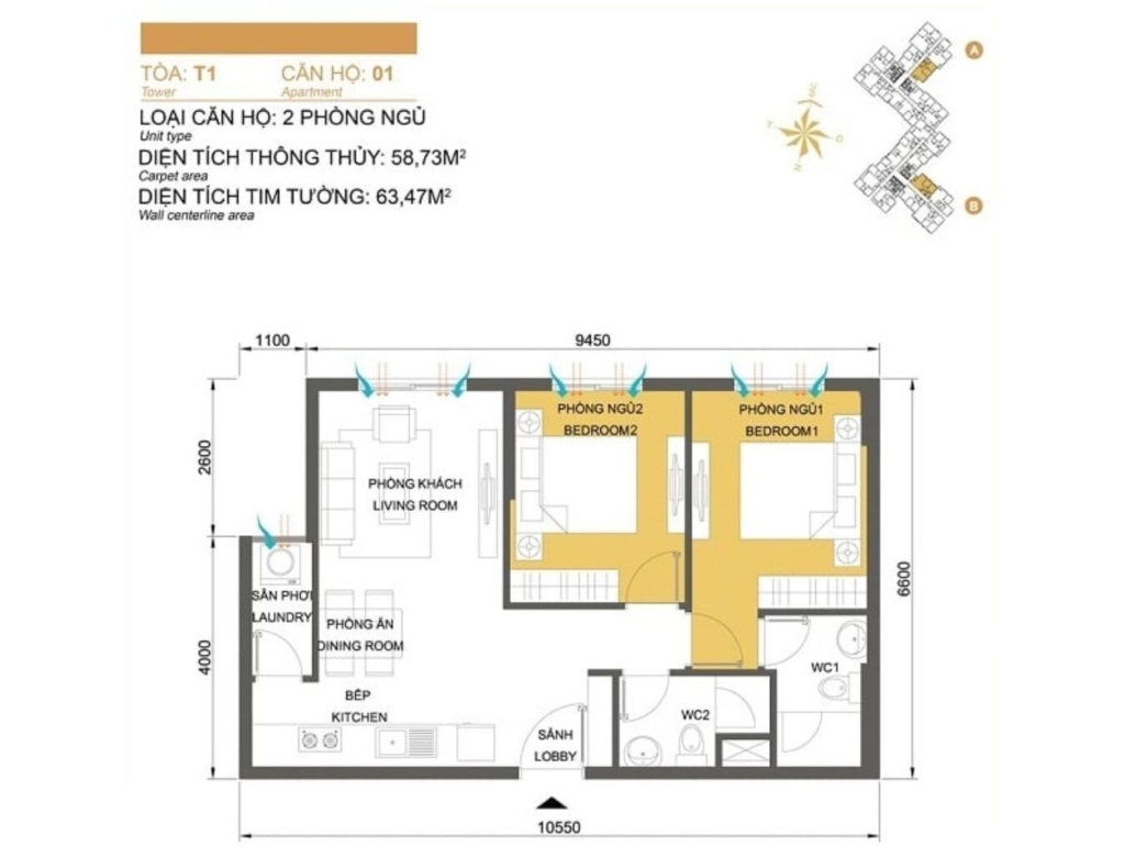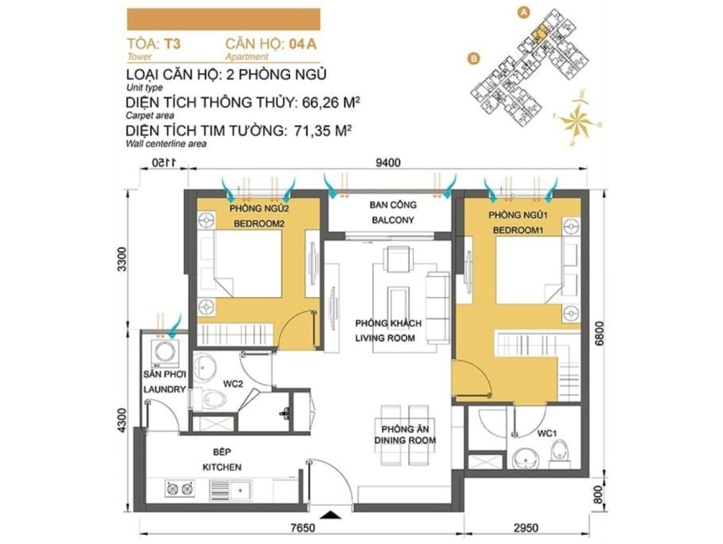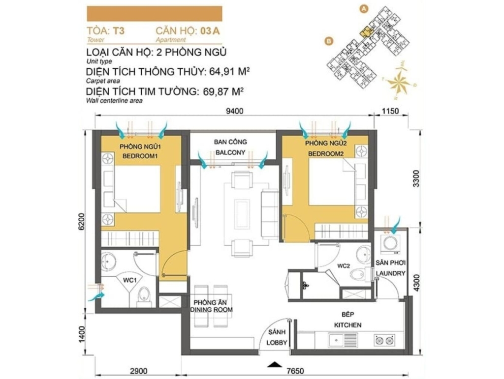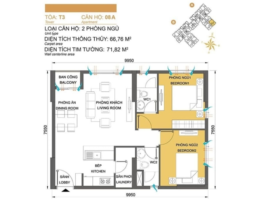 Mặt bằng Tòa T2