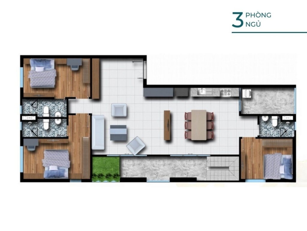 Penhouse 3 phòng ngủ – 3 nhà vệ sinh, 132m2