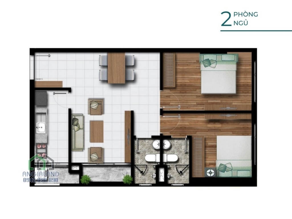 Căn 2 phòng ngủ – 2 nhà vệ sinh, 67m2