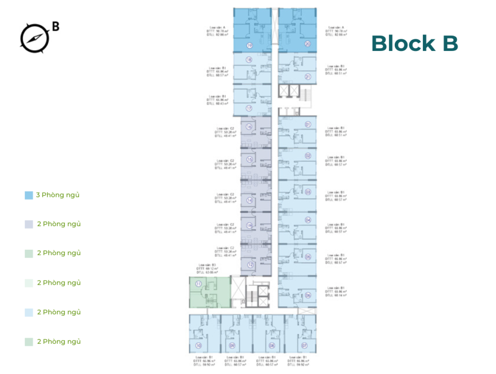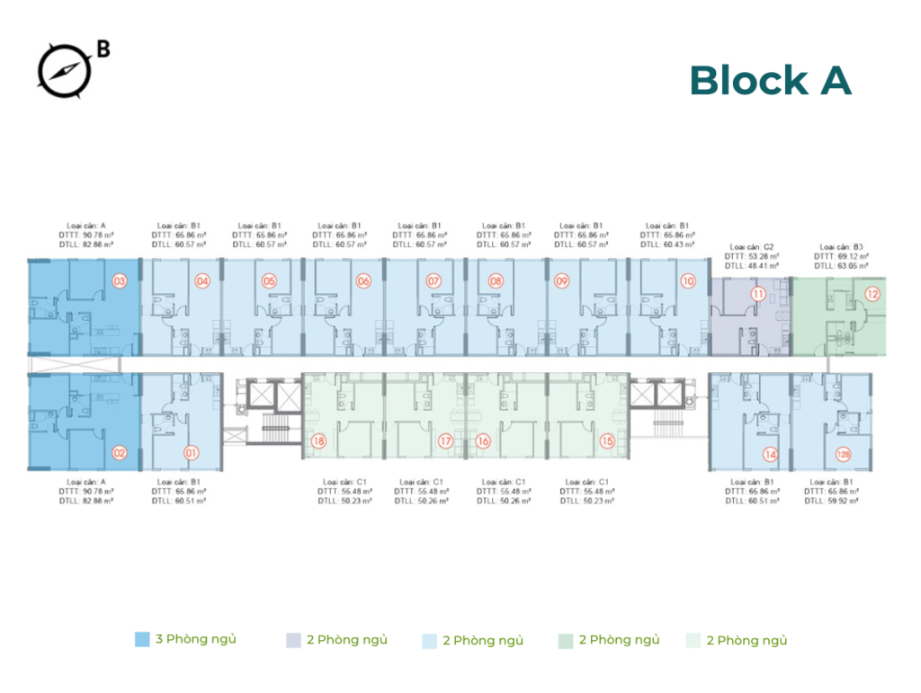 | Loại căn hộ | 2 ~ 3 phòng ngủ có diện tích từ 53.28m2 đến 90.78m2 |