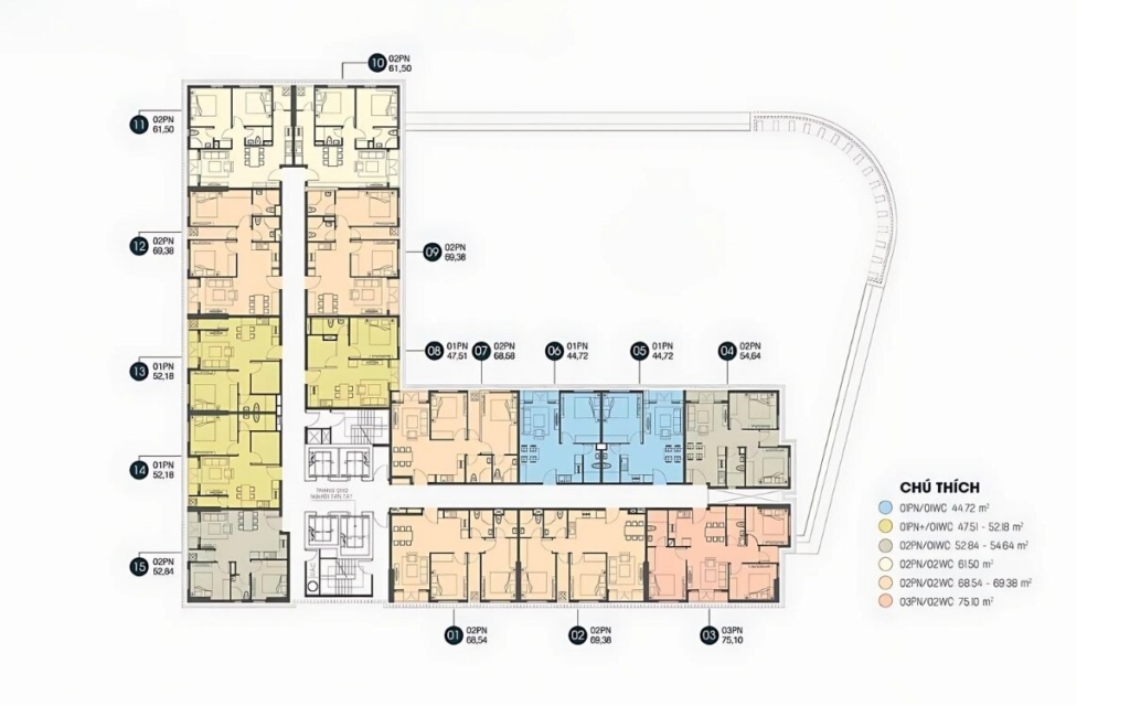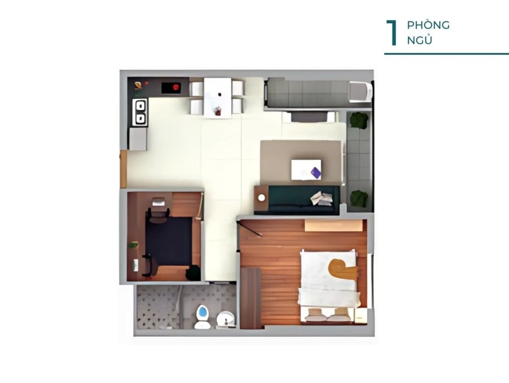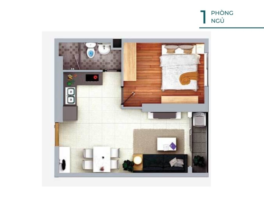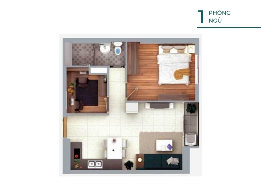 Căn 1 phòng ngủ – 1 nhà vệ sinh, 45m2