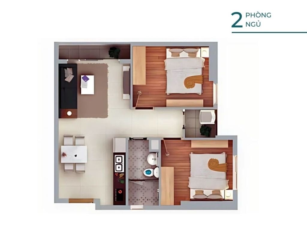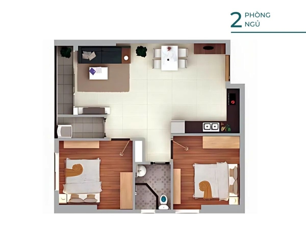 Căn 2 phòng ngủ – 1 nhà vệ sinh, 55m2