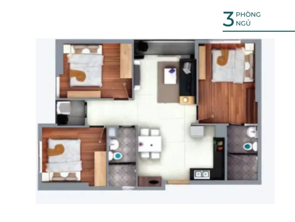 Căn 3 phòng ngủ – 2 nhà vệ sinh 75m2