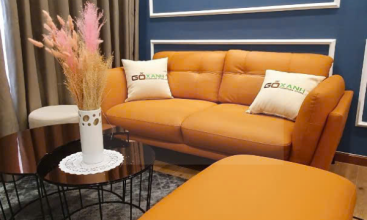 - Phòng khách rộng thoáng, sofa cam nổi bật, tường xanh navy sang trọng – không gian sống đẳng cấp nhất phân khúc.