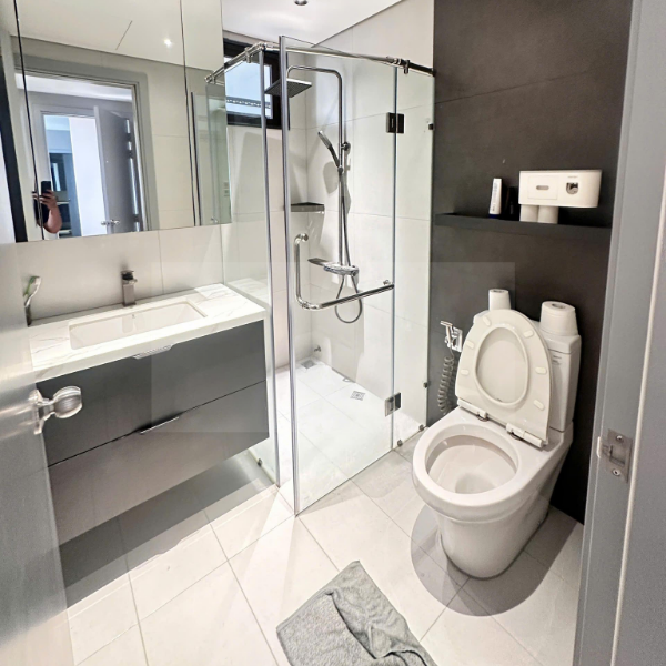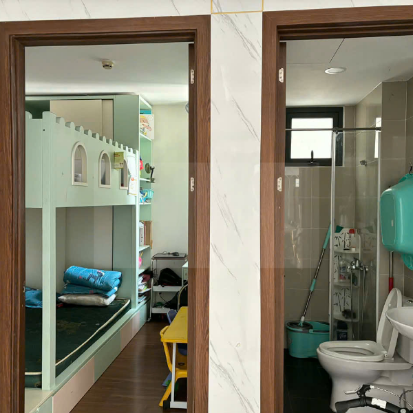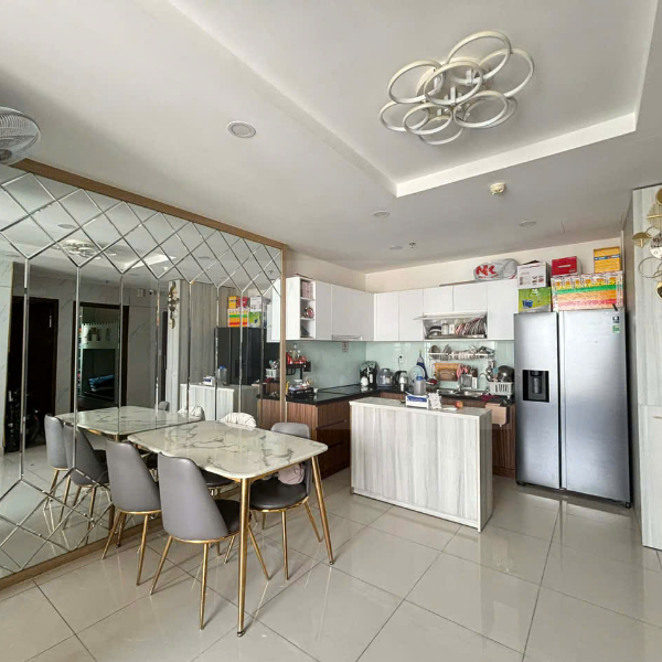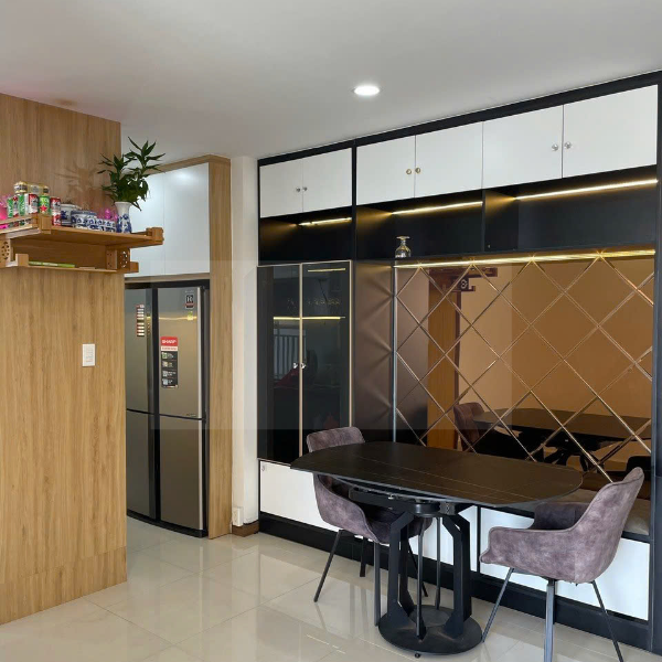 – Các phòng khách và bếp được lát gạch bóng kính 60x60cm, kết hợp với hệ thống trần và tường thạch cao sơn nước trắng, và hệ thống đèn LED Panasonic tiết kiệm điện.
