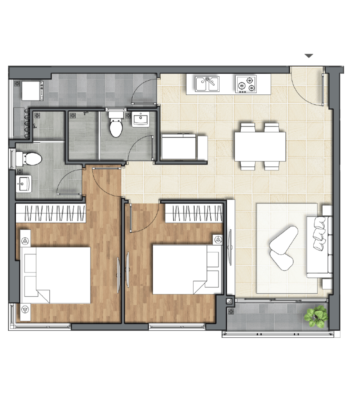 - 87% tổng thể dự án là các căn có diện tích:52 – 75 m2, chủ yếu là các căn 68.5 m2. Ngoài ra còn có các căn 2 Phòng ngủ thiết kế DuoKey đặc biệt 2 cửa.