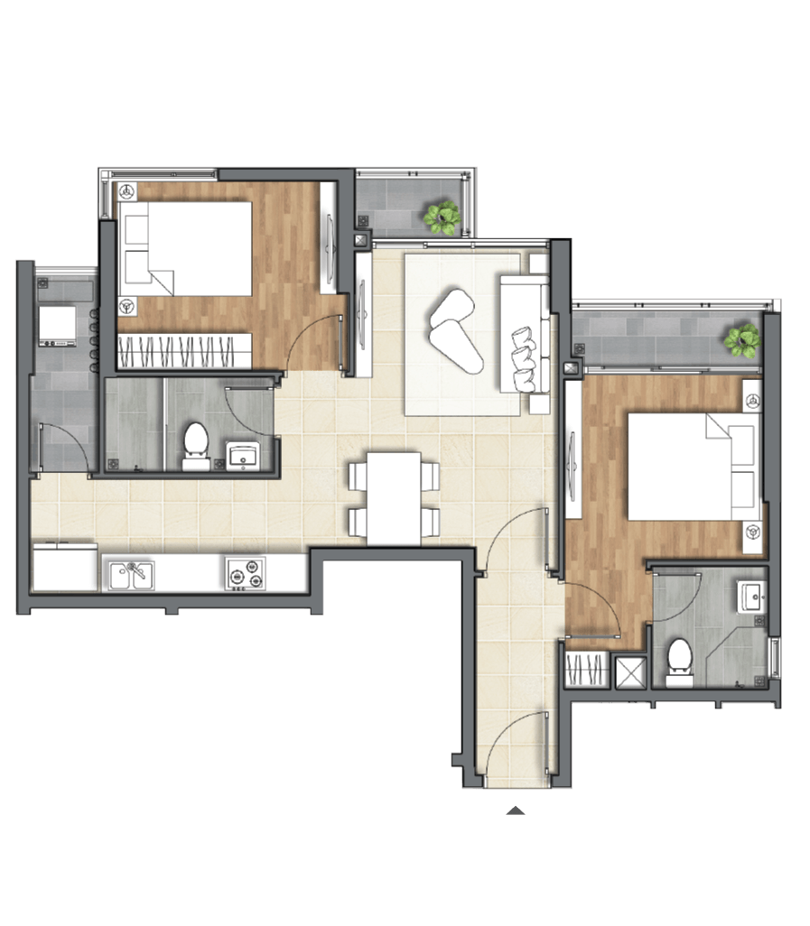 Các căn hộ đa dạng 1-3 phòng ngủ với diện tích vừa đủ được phân phối phù hợp nhu cầu khách hàng: