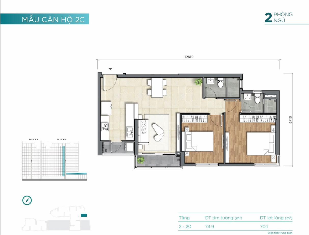 – Căn hộ nằm ở gốc được thiết kế rộng rãi 2 phòng ngủ đảm bảo gia đình đông người ở vẫn thoải mái.