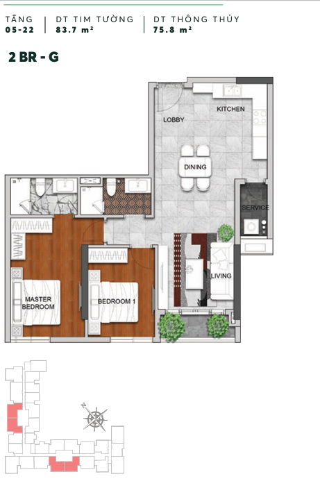 | Hướng ban công: | Tây Bắc | Phòng wc: | 2 |