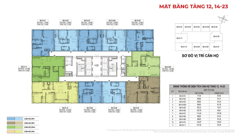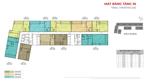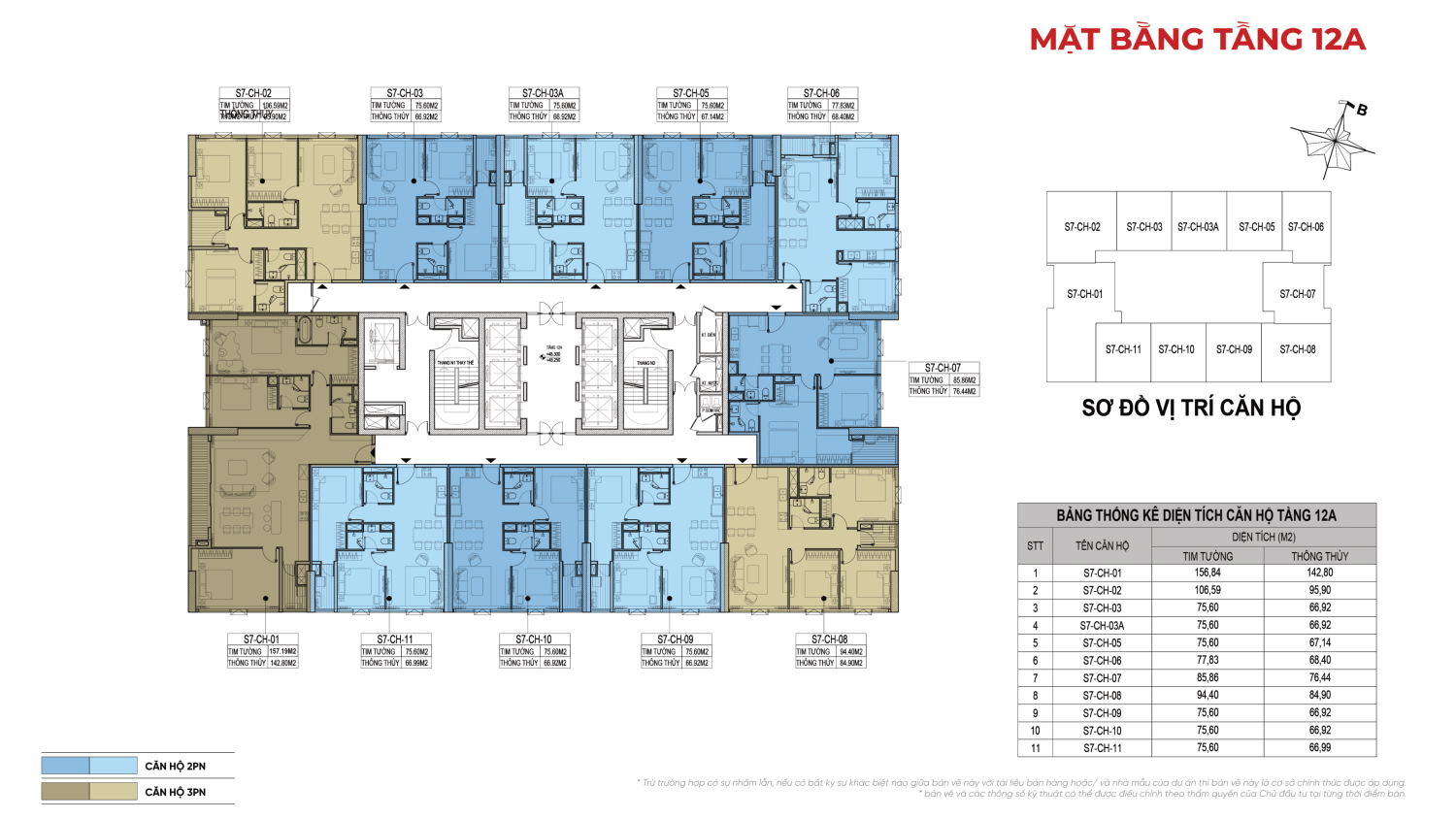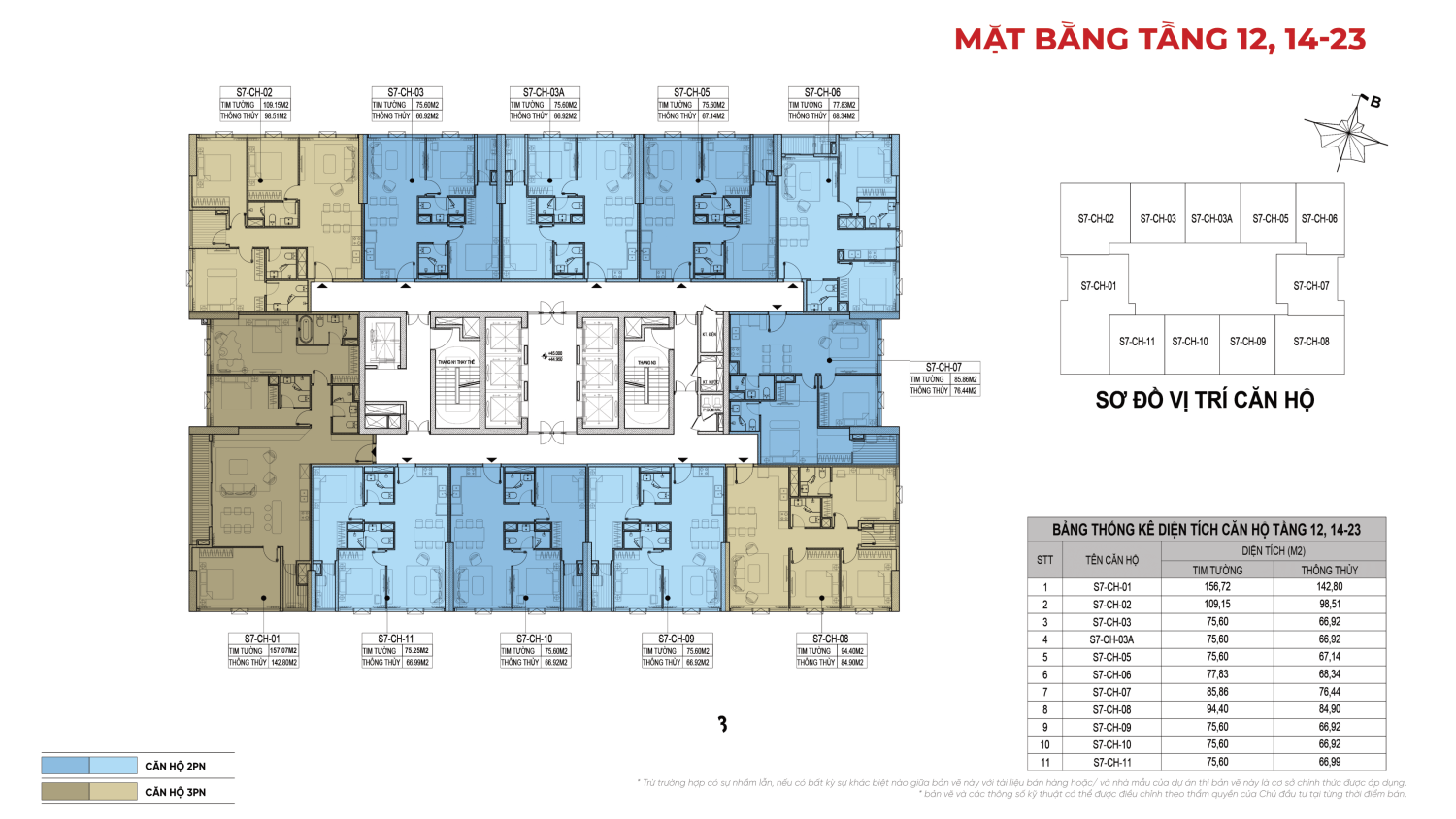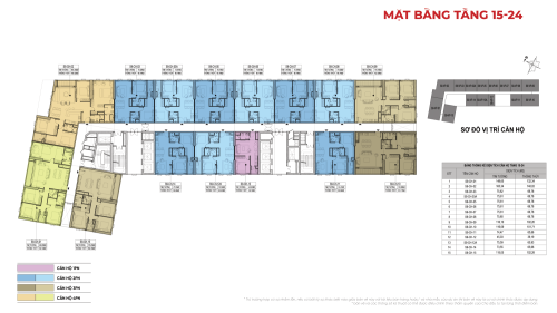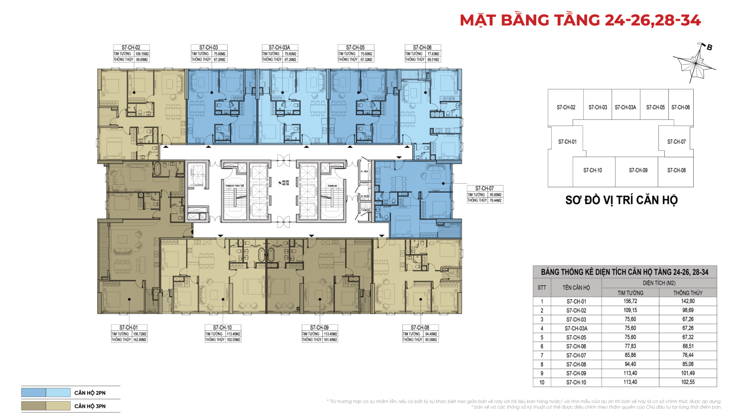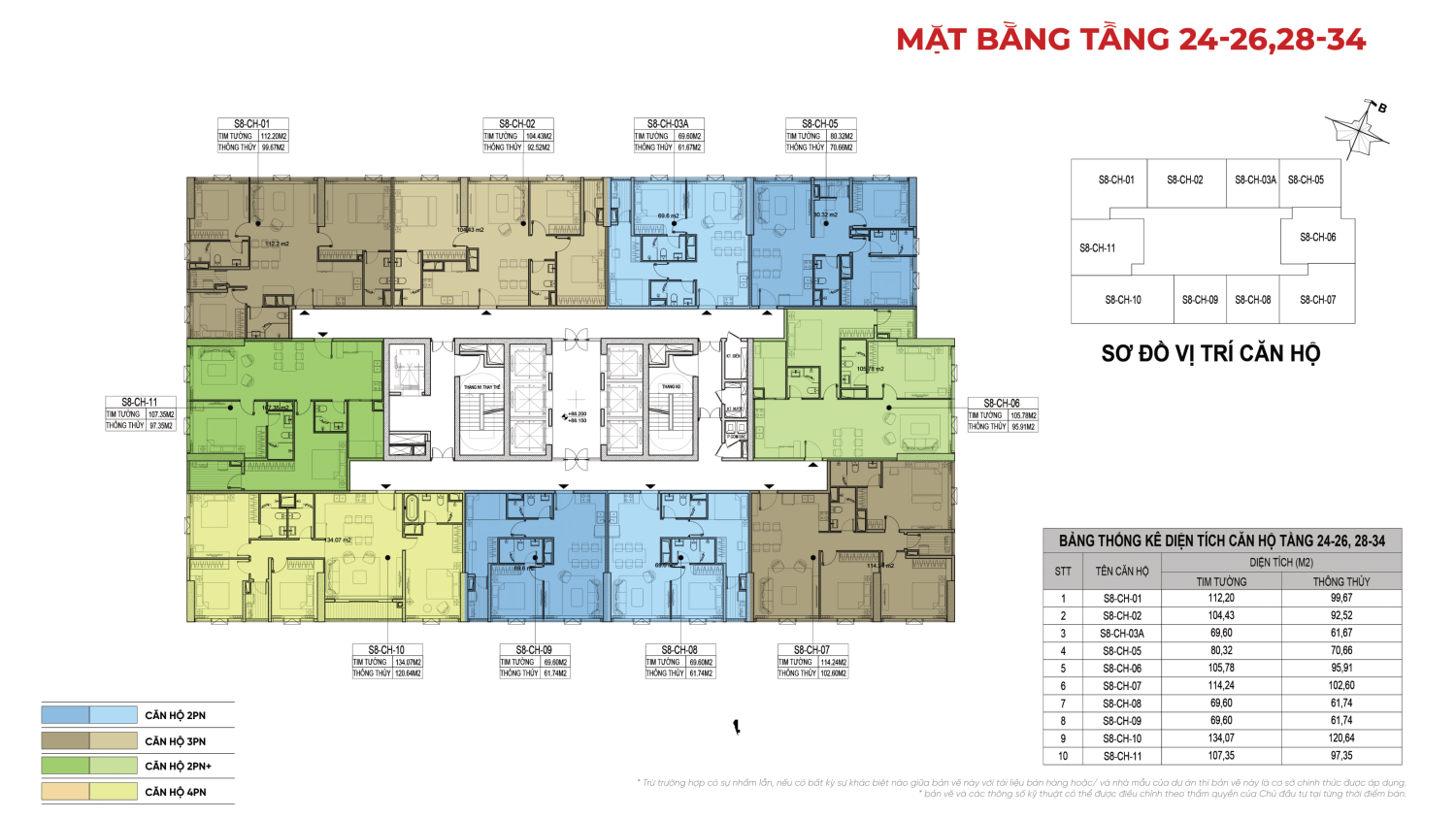 | Các loại căn hộ | Căn hộ 2PN (77,2 – 85,9 m2), 3PN (104,9 – 116,7 m2), 4PN (133,5 m2) & Penthouse |