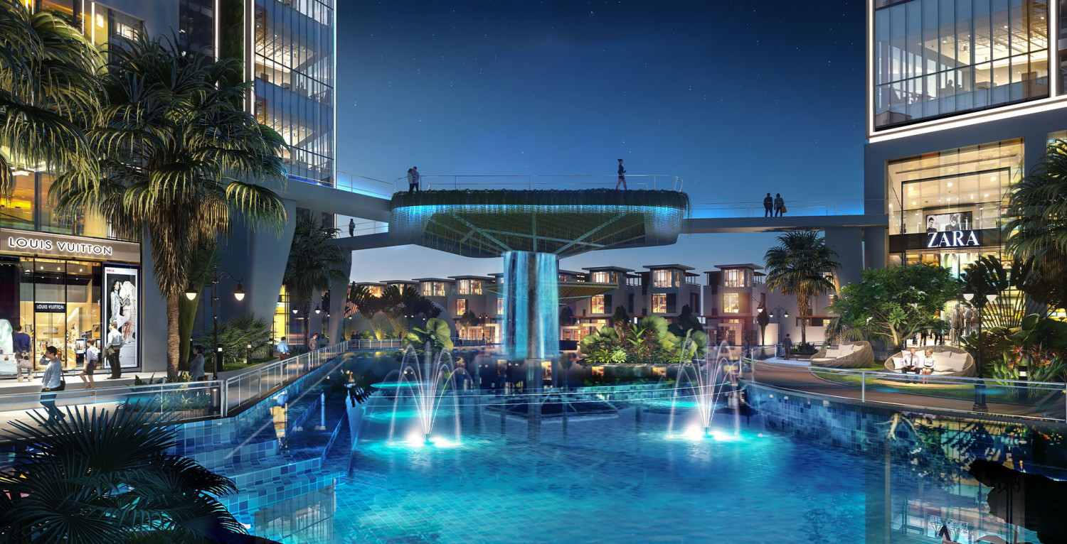 Vườn treo & thác nước lớn – mang hơi thở thiên nhiên đến từng căn hộ.