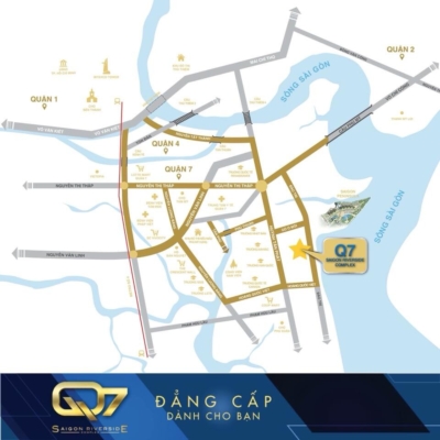 Dự án Q7 Complex tọa lạc trên mặt tiền đường Đào Trí, vị trí đắc địa nhất khu Nam Sài Gòn. Với sự gần gũi với 3 mặt sông Sài Gòn và tiếp giáp các tuyến đường như Hoàng Quốc Việt, Nguyễn Lương Bằng, dự án Q7 Riverside Complex cho phép cư dân dễ dàng di chuyển đến trung tâm Sài Gòn và các khu vực lân cận như Quận 1, Quận 2, Quận 4, cũng như khu đô thị Phú Mỹ Hưng một cách thuận tiện và nhanh chóng.