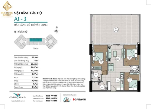 Mặt bằng căn 3PN Centum Wealth