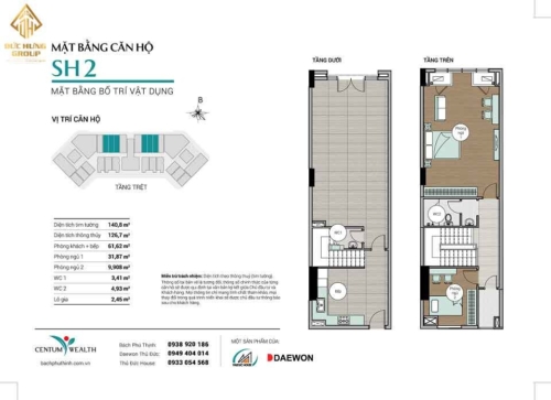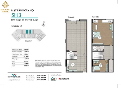 Mặt bằng căn 2 tầng Centum Wealth