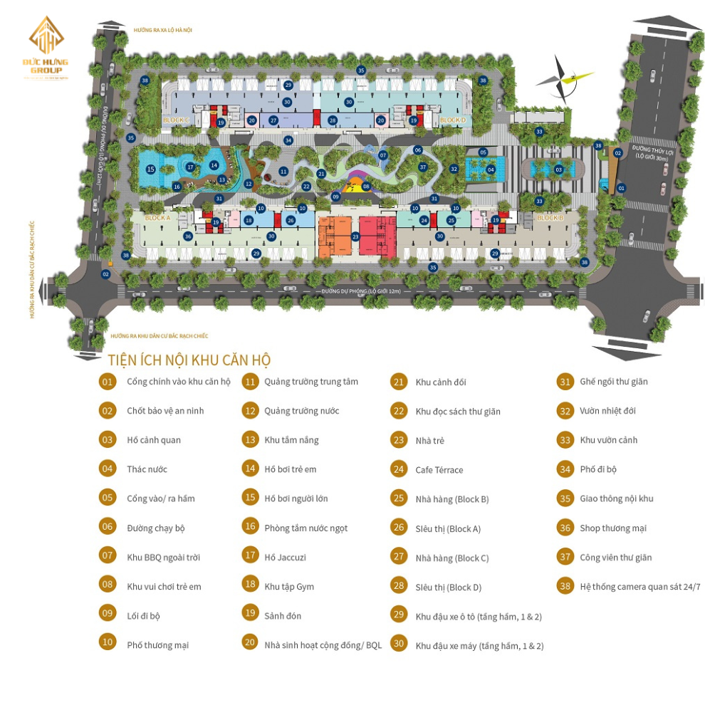 Mặt bằng tổng thể tiện ích Him Lam Phú An