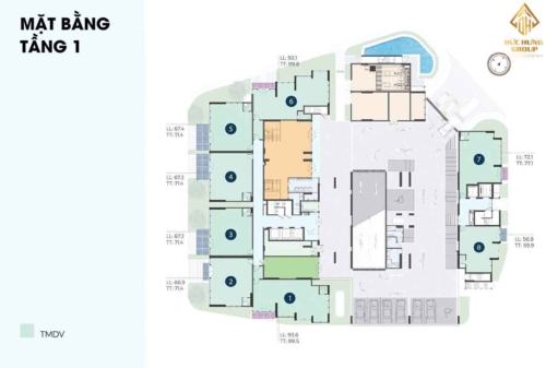 – Căn hộ 1B: 2PN – 2WC, có diện tích lọt lòng: 67.3m2 và diện tích tim tường: 71.6m2