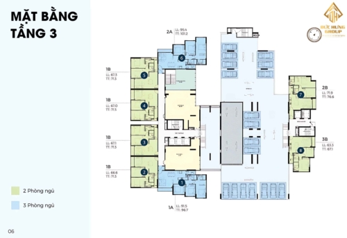 – Căn hộ 1A: 3PN – 2WC, có diện tích lọt lòng: 91.7m2 và diện tích tim tường: 96.7m2