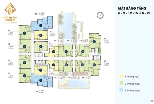 MẶT BẰNG TẦNG 6 – 9 – 12 -15 -18 – 21