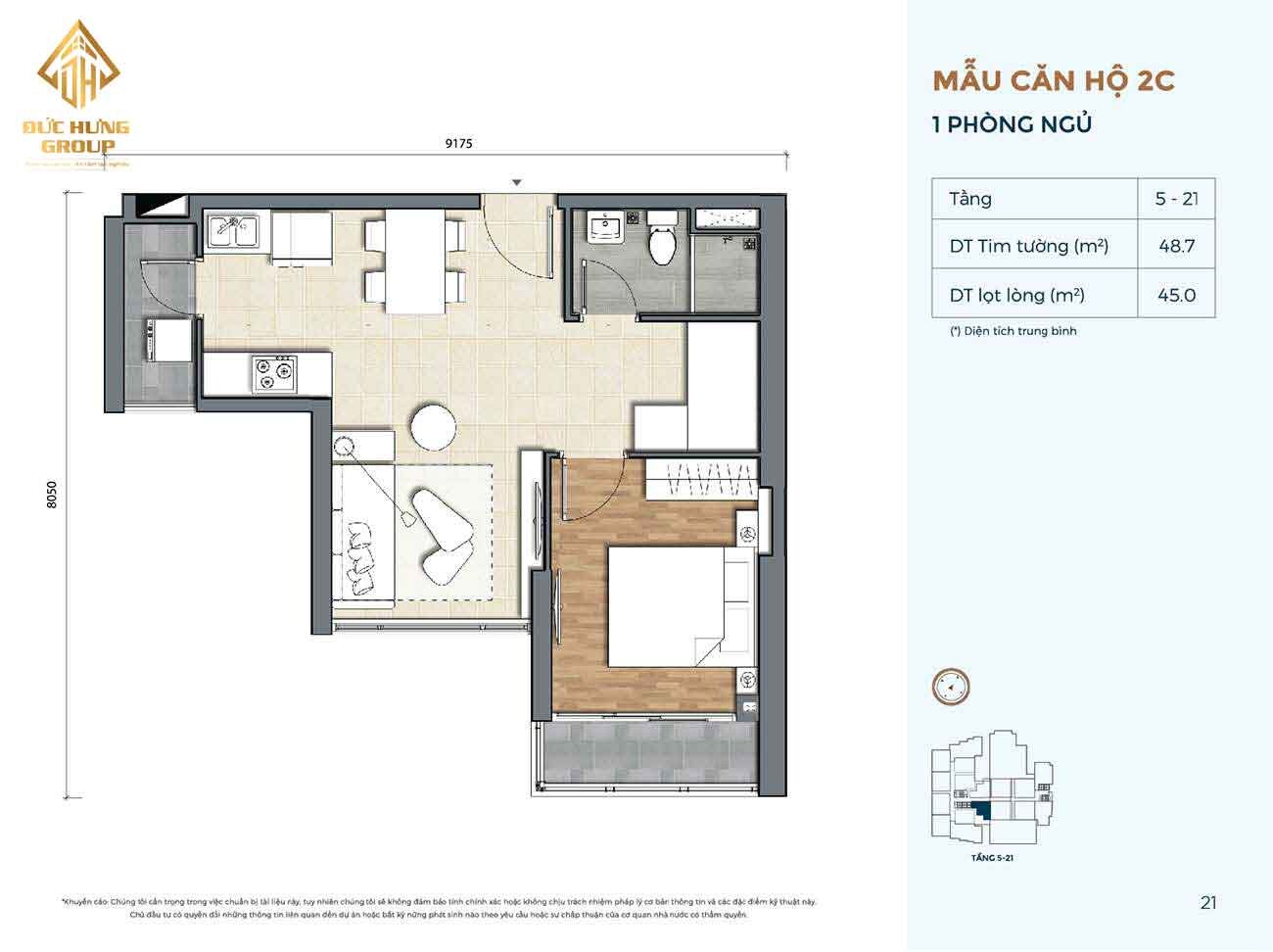 – Căn hộ 2C: 2PN – 2WC, có diện tích lọt lòng: 67.3m2 và diện tích tim tường: 71.6m2