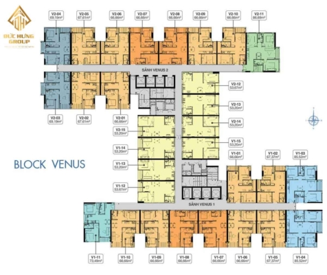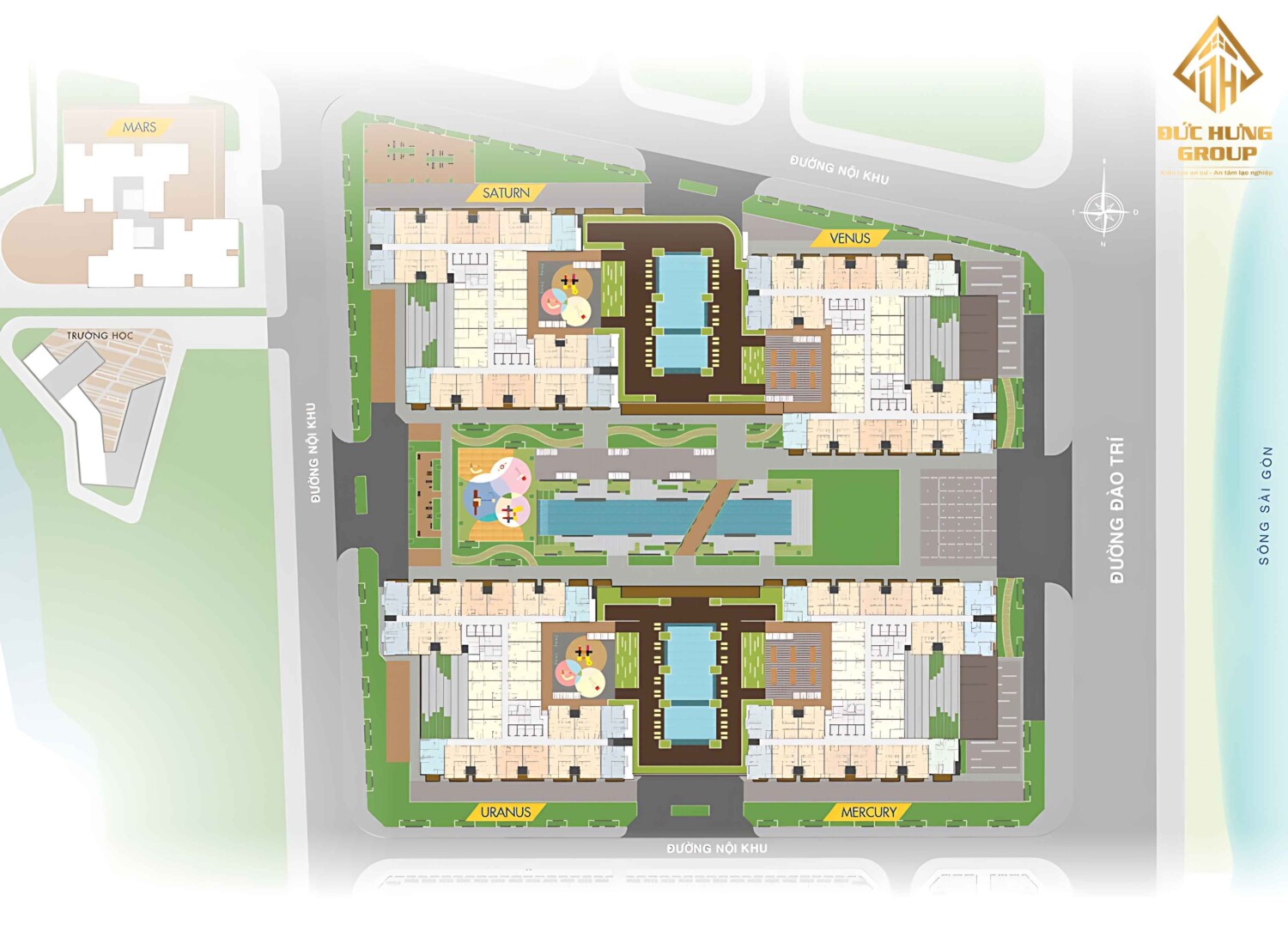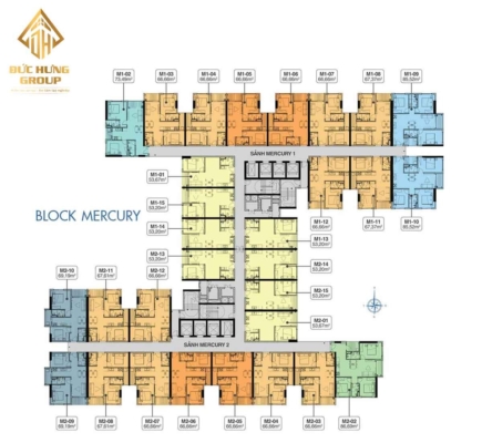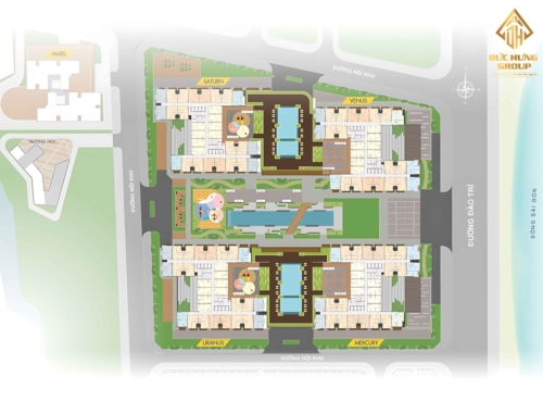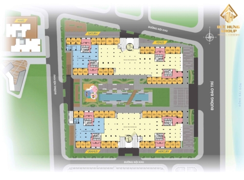 Mặt bằng Q7 Riverside chia thành 4 Block: Mecury, Uranus, Venus, Santurn. Mặt bằng thiết kế Q7 Saigon Riverside hướng view sông Saigon đường Đào Trí