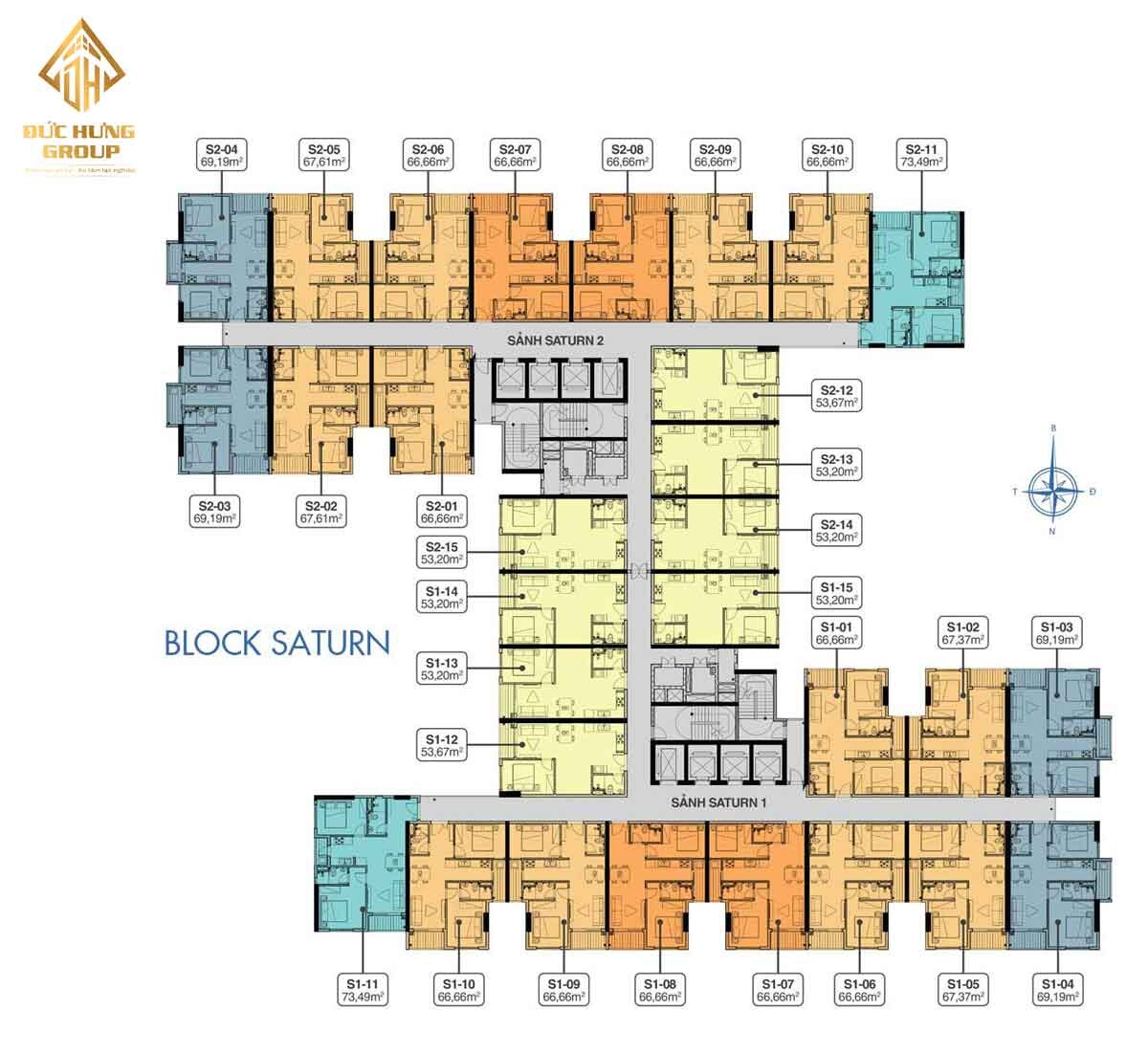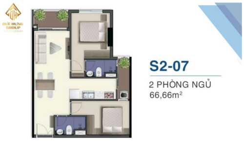 – Căn hộ S2-07: 2PN – 2WC, có diện tích: 66.66m2