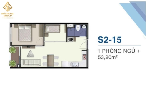– Căn hộ S2-15: 1PN + – 1WC, có diện tích: 53.20m2