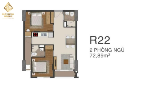 – Căn hộ R7: 2PN – 2WC, có diện tích: 72.89m2