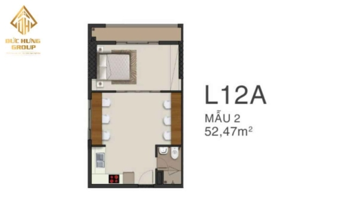– Căn hộ L12A: 1PN – 1WC, có diện tích: 52.47m2