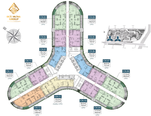 Loại hình thiết kế block C: 2PN – 3PN – 4PN – Duplex.