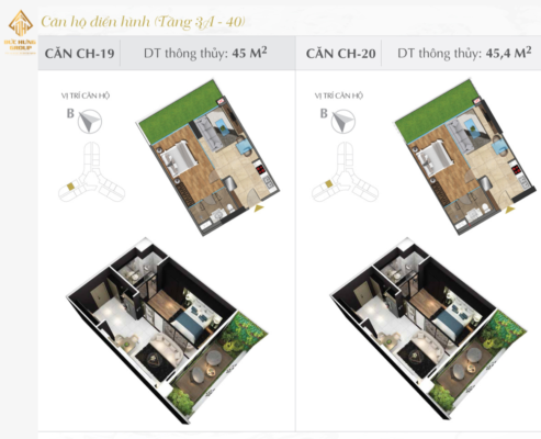– Căn hộ 19: 1PN – 1WC, có diện tích thông thủy: 45m2
