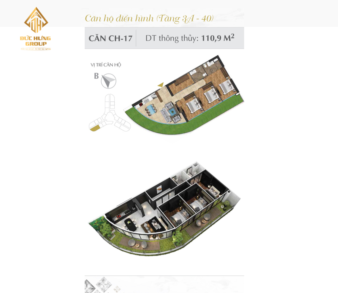 – Căn hộ 17: 3PN – 2WC, có diện tích thông thủy: 110.9m2