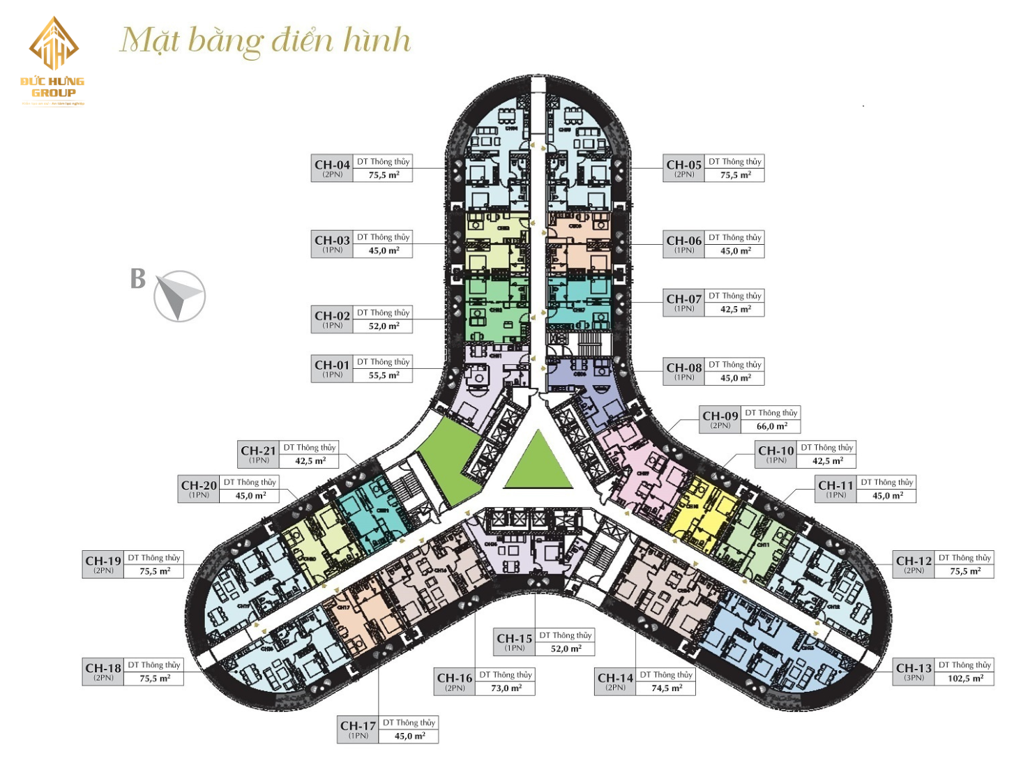 Loại hình thiết kế block B: 2PN – 3PN – 4PN – Duplex.
