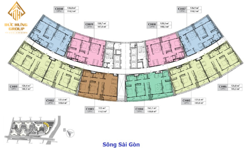 Block C Sunshine Diamond River là block có góc view đẹp nhất dự án. Mặt bằng thiết kế hình vòng cung nhìn trọn view về công viên Mũi Đèn Đỏ và sông Sài Gòn.